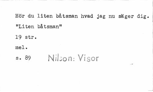 //// Hör du liten båtsman hvad jag nu säger dig. "Liten båtsman" 19 str. mel. //// s. 89 Nibori: Visor ////