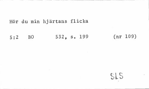 //// Hör du min hjärtans flicka //// 5:2 BO 532, s. 199 (nr 109) //// SLS ////