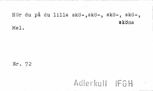 //// Hör du på du lilla sko-,sko-, skö-, sko-, //// sköna //// Mel. Nr. 72 //// Adlerkuii 1FGH ////
