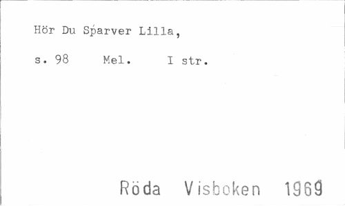 //// Hör Du Sparver Lilla, s. 98 Mel. I str. //// Röda Visboken 1969 ////