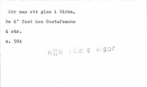 //// Hör man ett glam i Birka, De ä' fest hos Gustafssons 4 str. s. 504 //// All o uie; s visor ////