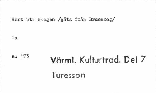 //// Hört uti skogen /gåta från Brunskog/ Tx //// s" 173 Värml. Kufturtrad. Del 7 Turesson ////