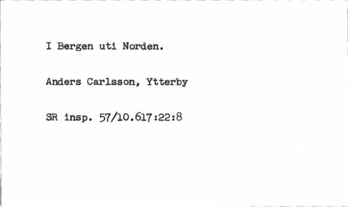 //// I Bergen uti Norden. Anders Carlsson, Ytterby SR insp. 57/10.617:22:8 ////