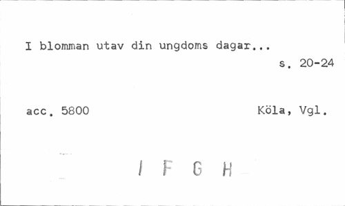 //// I blomman utav din ungdoms dagar... //// s. 20-24 //// acc. 5800 Kola, Vgl. //// i F G H ////