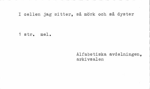 //// I cellen jag sitter, så mörk och så dyster 1 str. mel. //// Alfabetiska avdelningen, arkivsalen ////