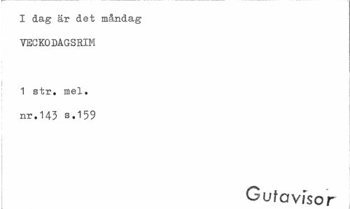 //// I dag är det måndag VECKODAGSRIM //// 1 str. mel. //// nr.143 s.159 //// Gutavlsor ////
