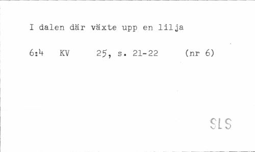 //// I dalen där växte upp en lilja 6:H KV 25, s. 21-22 (nr 6) //// SLS ////