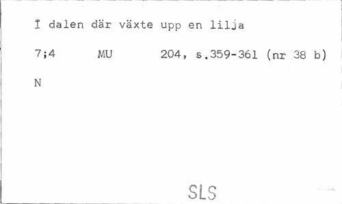 //// 1 dalen där växte upp en lilja //// 7;4 MU 204, s.359-361 (nr 38 b) //// N //// SLS ////