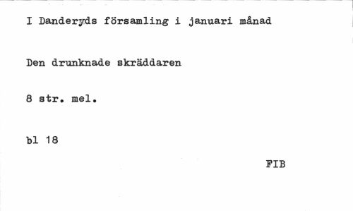 //// I Danderyds församling i januari månad //// Den drunknade skräddaren 8 str. mel. //// bl 18 //// FIB ////