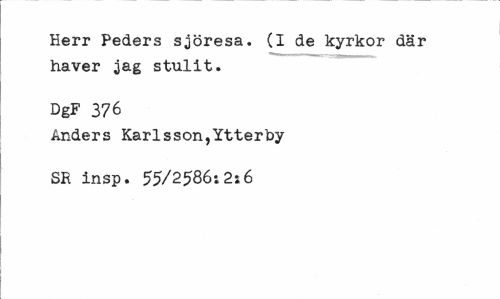 //// Herr Peders sjöresa. (I de kyrkor där haver jag stulit. //// DgF 376 //// Anders Karlsson,Ytterby SR insp. 55/2586;2i6 ////