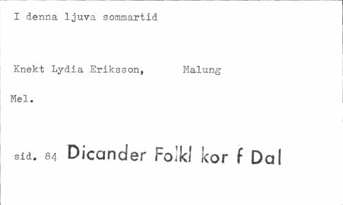 //// I denna ljuva sommartid //// Knekt Lydia Eriksson, Malung //// Mel. //// sid. 84 Dicander Folk! kor f Dal ////