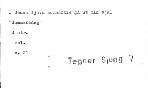 //// I denna ljuva sommartid gå ut min själ "Sommarsång" 4 str. mel. s. 21 //// Tegnér Sjung 7 ////