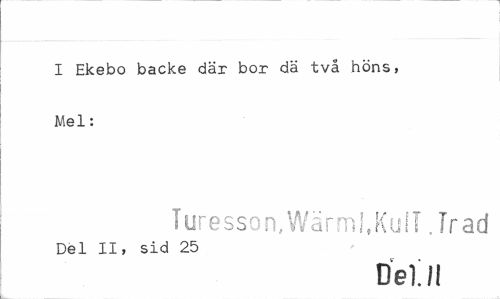 //// I Ekebo backe där bor dä två höns, Mel: //// Turesson, Wärml,KuiT .Trad //// Del II, sid 25 //// Del II ////