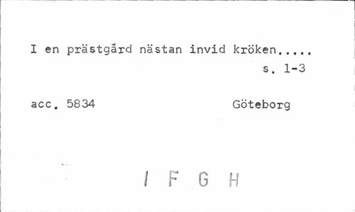 //// I en prästgård nästan invid kröken... //// s. 1-3 //// acc. 5834 Göteborg //// I F 6 H ////