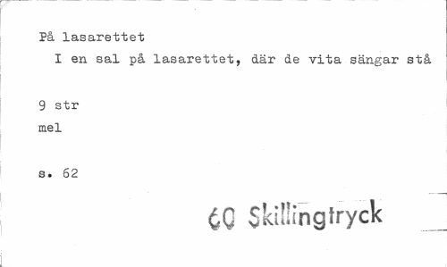//// På lasarettet //// I en sal på lasarettet, där de vita sängar stå //// 9 str mel //// s. 62 //// $ kil!in g tryck ////