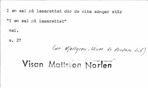 //// I en sal på lasarettet där de vita sängar står "I en sal på lasarettet" mel. s. 27 //// (ef X/esVjf^ , Yr fbrfa^ //// Visen Mattson Norlen ////
