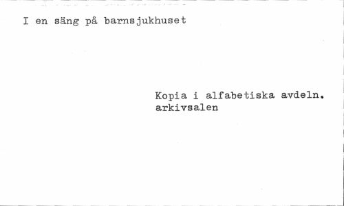 //// I en säng på barnsjukhuset //// Kopia i alfabetiska avdeln. arkivsalen ////