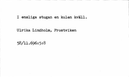 //// I ensliga stugan en kulen kväll. Ulrika Lindholm, Frostviken 58/11.696:5:8 ////