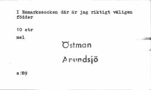 //// I Esmarkssocken där är jag riktigt väligen födder //// 10 str mel //// Östman //// Arunds jö //// s !B9 ////