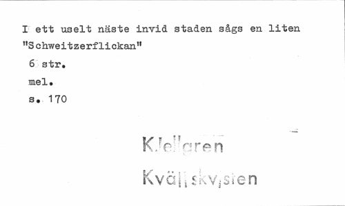 //// I ett uselt näste invid staden sågs en liten "3 chweitzerflickan" 6 str. mel. s. 170 //// Kr M //// ,ro nren Kvä|i skvjsien ////