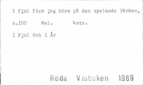 //// I fjol fick jag höra på den spelande lärkan, s.IOO Mel. str. //// I Fjol Och I År //// Röda Visboken 1969 ////