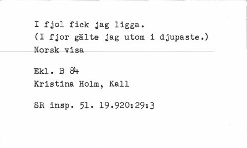 //// I fjol fick jag ligga. (I fjor gälte jag utom i djupaste.) -Norsk visa- //// Ekl. B //// Kristina Holm, Kall SR insp. 51. 19.920:29:3 ////