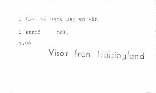 //// I fjol sä hade jag en vän //// 1 strof mel. //// s . 64 //// Visor från Hälsingland ////