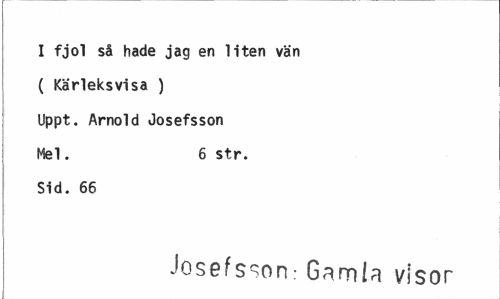 //// I fjol så hade jag en liten vän ( Kärleks vi sa ) Uppt. Arnold Josefsson Mel. 6 str. //// Sid. 66 //// Josefsson: Gamla visor ////