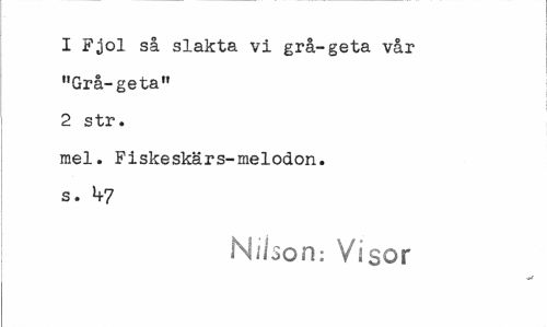 //// 1 Fjol så slakta vi grå-geta vår "Grå-geta" //// 2 str. //// mel. Fiskeskärs-melodon. s. k7 //// Nilson: Visor ////