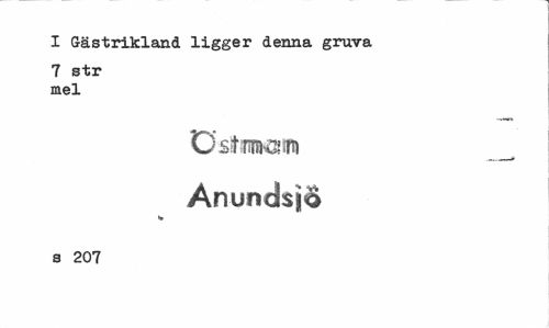 //// I Gästrikland ligger denna gruva //// 7 str mel //// östmsini ___ //// Ånundsjo //// w //// s 207 ////