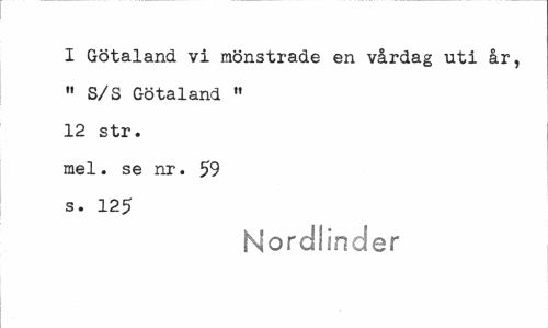 //// I Götaland vi mönstrade en vårdag uti år, " S/S Götaland " 12 str. //// mel. se nr. 59 s. 125 //// Nordlinder ////
