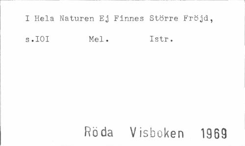 //// I Hela Naturen Ej Finnes Större Fröjd, s.IOI Mel. Istr. //// Röda Visboken 1969 ////