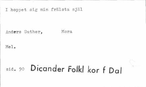//// I hoppet sig min frälsta själ //// AncLprs Suther, Mora //// Mel. //// sid. es Dicander FoJkl kor f Dal ////