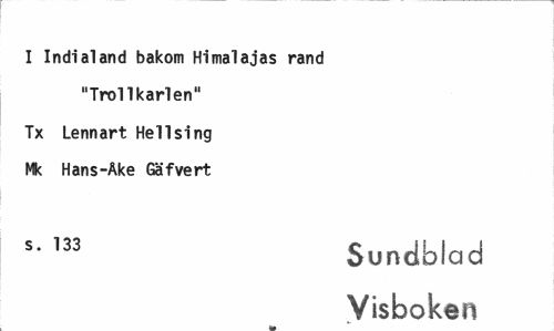 //// I Indialand bakom Himalajas rand //// "Trollkarlen" Tx Lennart Hellsing Mk Hans-Äke Gäfvert //// s" 133 Sundblad //// Visboken ////