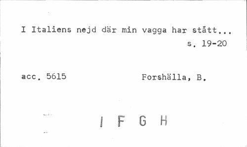 //// I Italiens nejd där min vagga har stått... //// s. 19-20 //// acc. 5615 Forshälla, B. //// I F G H ////