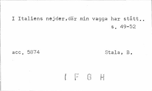 //// I Italiens nejder,där min vagga har stått., //// s. 49-52 //// acc. 5874 Stala, B. //// 1 F G H ////