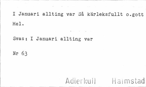 //// I Januari allting var Så kärleksfullt o.gott Mel. //// A. ¦ -i //// Svas: I Januari allting var Nr 63 //// Adlerkuii Halmstad ////