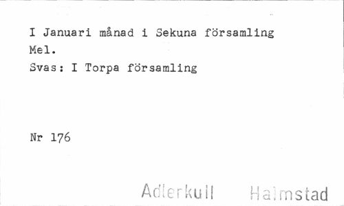 //// I Januari månad i Sekuna församling Mel. //// Svas: I Torpa församling Nr 176 //// Adlerkuii Ha.fristad ////