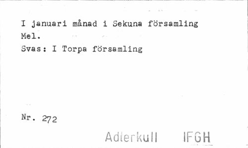 //// I januari månad i Sekuna församling Mel. //// Svas: I Torpa församling Nr. 272 //// Adlerkuii IFGH ////