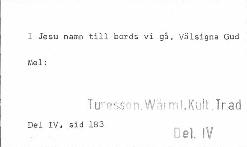 //// I Jesu namn till bords vi gå. Välsigna Gud Mel: //// Ttrre ss an. Wär m!, Ku11. Tr ad //// Del IV, sid 183 //// Del. IV ////