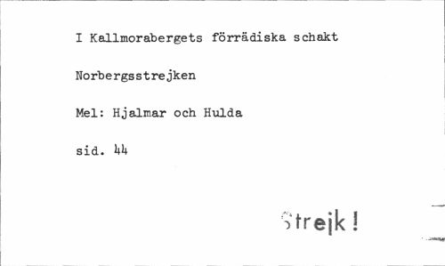 //// I Kallmorabergets förrädiska schakt //// Norbergsstrejken //// Mel: Hjalmar och Hulda //// sid. UU //// Vtrejk! ////