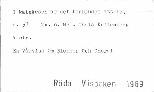 //// I katekesen är det förbjudet att le, s. 58 Tx. o. Mel. Gösta Kullefaberg V str. //// En Vårvisa Om Blommor Och Omoral //// Röda Visboken 1989 ////