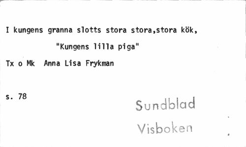 //// I kungens granna slotts stora stora,stora kök, //// "Kungens lilla piga" Tx o Mk Anna Lisa Frykman //// S' 78 Sundblad //// Visboken ////