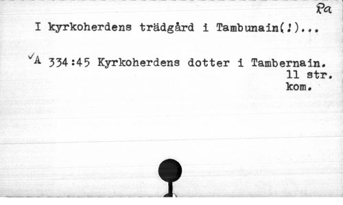 //// ra //// I kyrkoherdens trädgård i Tambunain(l)... //// A 334:45 Kyrkoherdens dotter i Tambernain. //// 11 str. kom. //// ___f ////