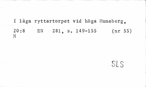 //// I låga ryttartorpet vid höga Huneberg, //// 20:8 EN 281, s. 149-155 (nr 55) //// N //// SLS ////