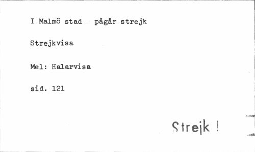 //// I Malmö stad pågår strejk Strejkvisa Mel: Halarvisa sid. 121 //// Strejk ! ////