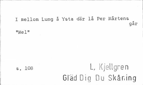 //// I me11om Lung å Ysta där lå Per Mårtens //// går //// "Mel" //// s. 108 L, Kjellgren //// Gläd Dig Du Skåning ////