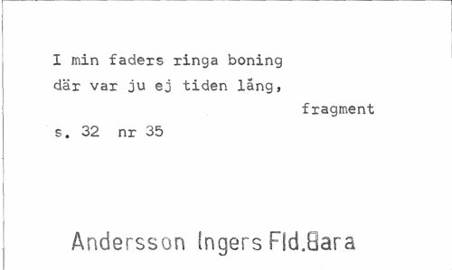 //// I min faders ringa boning där var ju ej tiden lång, //// fragment //// s. 32 nr 35 //// Andersson (ngers Fid.Sara ////