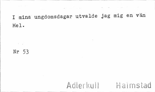 //// I mina ungdomsdagar utvalde jag mig en vän //// Mel. //// Nr 53 //// Adlerkull Halmstad ////