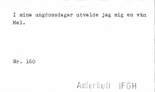 //// I mina ungdomsdagar utvalde jag mig en vän //// Mel. //// Nr. 160 //// Adlerkull IFGH ////